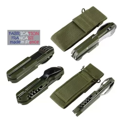 Sélectionné par l’armée de terre Française pour sa qualité de fabrication et sa praticité, ce matériel de camping et randonnée est parfait pour toutes vos sorties outdoor. Livré dans une housse, il s’agit d’un bloc contenant de nombreuses fonctions dont un couteau à cran de sûreté, d’un tire-bouchon et d’une cuillère et fourchette amovible. Le manche est également équipé d’un ouvre boîte.