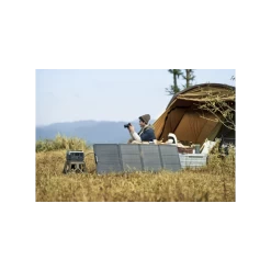 Idéal pour produire de l’énergie en toute autonomie, ECOFLOW propose son panneau solaire PERC de 110 W. Pliable, le format valise est particulièrement adapté & pratique pour le transporter. Sa mise en place reste simple, dépliez le, branchez les connecteurs sur votre batterie & le tour est joué. Sur trépied, vous pourrez recharger votre batterie rapidement grâce à la meilleure exposition au soleil. Doté de 32 cellules, le panneau portatif offre un rendement de 22%. Le film de protection en ETFE protège les cellules des rayons UVs afin de conserver son efficacité plus longtemps. Pour une recharge complète de la batterie 3 à 6 heures seront nécessaires par charge solaire.