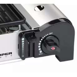 Accessoire de qualité KEMPER, ce réchaud/barbecue gaz offre toutes les fonctionnalités indispensables : réglage de la puissance manuel, bac à collecteur de graisse, grille anti-adhésive et même allumage piézo électrique ! Bref l’essentiel pour l’indispensable !