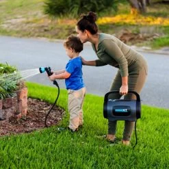 Pouvant être remplie avec de l’eau chaude ou froide, le Pod a une capacité de stockage de 6,6 L d’eau. Il peut être connecté sur un robinet de tuyau d’arrosage, ou même sur un robinet domestique grâce à son adaptateur fourni.